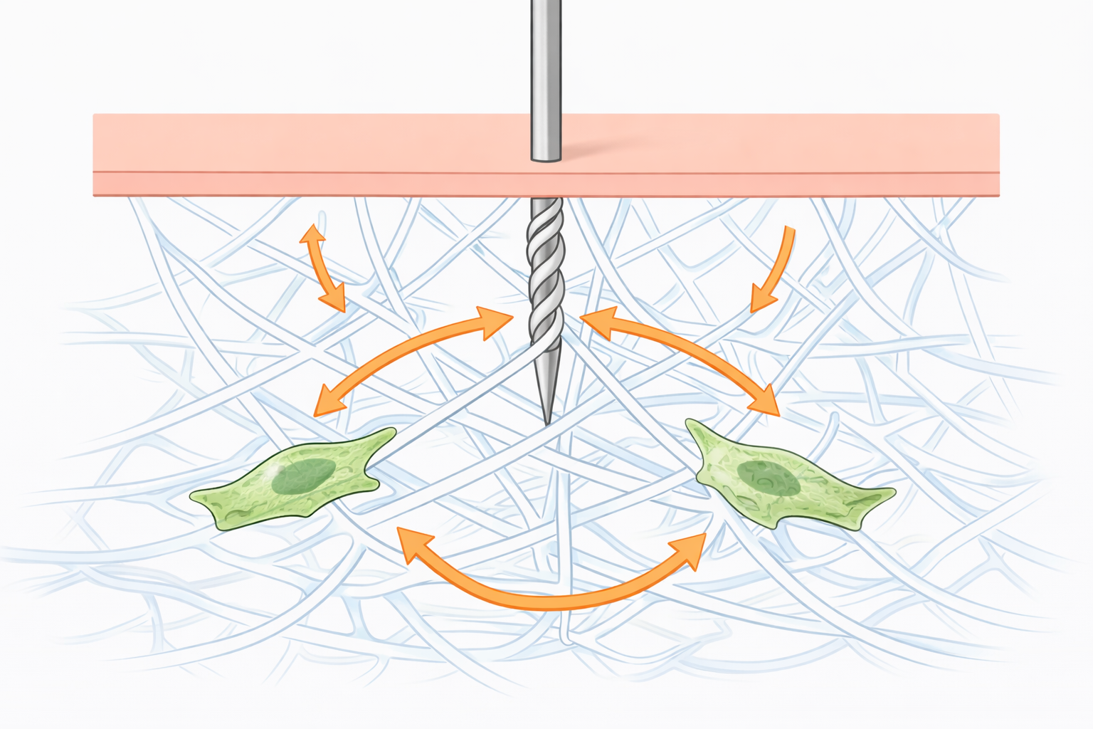 鍼を皮下まで刺入し 回旋操作を加えると 周囲の皮下結合組織が鍼に巻き付く (connective tissue winding)